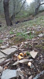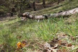 Por lo que yo he observado, las cantharelli son extremadamente versátiles en su capacidad para aflorar cuando las condiciones climáticas le son propicias, casi tanto como lo es su carne desde un punto de vista culinario. No les atacan babosas [aquí alimachas] ni larvas de ningún insecto. A los corzos, porcotexos [tejones] y jabalíes les debe atraer algo su aroma o su color en las noches claras, porque a veces encontramos las setas tumbadas en zonas hozadas o pisoteadas con sus huellas, pero está claro que no se las comen. En general por aquí las chantarelas salen en terrenos orientados al sur; sin embargo, también en un par de sitios las he encontrado mirando completamente hacia el norte. Les gustan los suelos con mucho humus y sedimentos, bien drenados, como a casi todos los hongos, pero también las he visto salir tan campantes en terrenos horriblemente pedregosos, con poco o nada de mantillo y hasta encharcados. Incluso en sotos quemados pocas semanas antes de su floración, las cantharelli vuelven a aparecer tozudas. Pero a pesar de esa increíble adaptación al medio, donde sí que no salen bajo ninguna circunstancia es en suelos labrados o en terrenos que alguna vez han sido sulfatados con glifosato.