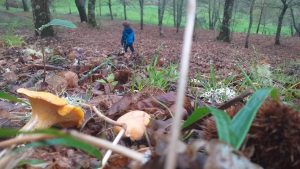 Las chantarelas nacen principalmente en sotos de castaños. Es verdad que alguna vez las he recogido en bosquecillos de robles relativamente viejos, con ejemplares que podrían tener cincuenta o setenta años, pero esos bosques siempre están contiguos a sotos de castaños que, aunque se los vea plantados en fila como un cultivo más, son considerablemente más viejos que los propios robles. O sea que el micelio se tuvo que haber extendido ladera arriba hacia el bosque de planifolios desde los castaños de cultivo y no viceversa. Lo que significa que la simbiosis entre los castaños y las cantharelli es absoluta en estas tierras y el hecho de que los frutos de los primeros sean la principal fuente de capital acumulable que sale de nuestra aldea hace que las segundas (que de momento a nadie le llaman la atención económicamente) puedan resultar interesantes como reflejo de las distintas maneras de obtener esa riqueza y distribuir su plusvalía.