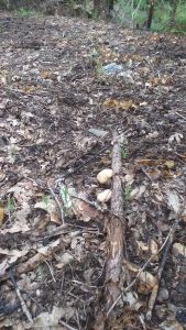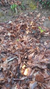 Las setas más pequeñitas, las que hay que limpiar a conciencia porque vienen más embarradas, en general proceden de sustratos bajo castaños que ya sirven para la explotación comercial. La cosecha de las castañas en estas fincas se sigue haciendo muchas veces en familia, pero con un fin marcadamente crematístico. En los almacenes de la zona compran al peso las castañas frescas a un precio que sigue subiendo cada año a medida que la demanda internacional aumenta (0,70-0,75€ /kg hace 6 años cuando vinimos y entre 1,10 y 1,25 este último año). Con ese valor en el mercado mayorista, gente que vive en otros pueblos grandes de la comarca o en la capital Ponferrada y que tenía los castaños medio abandonados en nuestro pueblo ha vuelto a interesarse por ellos, porque les proporcionan un importante sobresueldo en B durante las cuatro o cinco semanas de octubre y noviembre que dura la campaña. Esa gente controla bastante cantidad de árboles: los del abuelo y la abuela, los de los tíos-abuelos, los de algún pariente en Barcelona que ya no viene nunca al pueblo… Por eso, a pesar de que muchos se toman las vacaciones en sus puestos de trabajo para hacer la campaña y meterse en el bolsillo un pellizco equivalente a varios salarios mensuales; a pesar de que van a las castiñeiras desde que dios amanece hasta que anochece, llueva, nieve o haga sol; a pesar de que suelen ser gente relativamente joven en buena forma; a pesar de que no les duelan prendas en poner a currar a los niños si hace falta; a pesar de todos esos pesares, muchas veces se ven apurados de tiempo, sobre todo si la temporada es buena, para recoger tal cantidad de dinero que se les cae por los suelos. Por eso rastrillan y avientan las hojas y los erizos al menos una vez a mitad de la cosecha, para en la segunda mitad no perder tiempo seleccionando entre los erizos llenos y los que están vacíos. Además desbrozan en verano, para que no haya ni una brizna en octubre y noviembre, no vaya a ser que los dedos de las manos se les entretengan rebuscando castañas entre tabones de hierba. Algunos, en días soleados de invierno, vuelven al pueblo para amontonar y quemar todos los restos de la cosecha y, si el fuego se les descontrola, se van corriendo a sus casas en zonas residenciales del Bajo Bierzo y a ver quién va a decir que han sido ellos en esta microsociedad de engrasado clientelismo y mejor me callo no sea que un día me pase a mí y el hijo de fulanito no me deba el favor de su silencio. Lo importante es que cuando llegue el tiempo de las castañas maduras, esas bolitas brillantes por las que las urracas de los intermediarios te darán hasta treinta euros si se las llevas en un saco entero, ellos no vayan a quedarse sin recoger alguna de las que, por una cuestión de derecho consuetudinario, consideran que les pertenece.